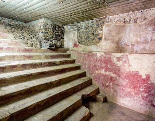 Inside Teotihuacán’s palaces, walls burst with frescoes of jaguars, butterflies, and deities. Beneath the Pyramid of the Feathered Serpent lies a hidden tunnel discovered in 2003 — thought to symbolize the underworld. You can’t enter the tunnel, but guided tours reveal its story through reconstructions and findings at the on-site museum.