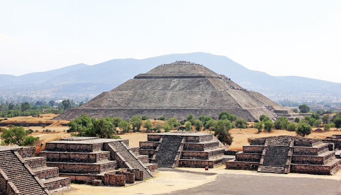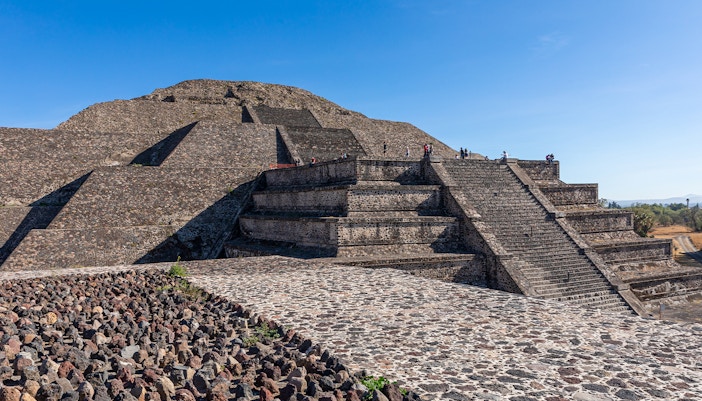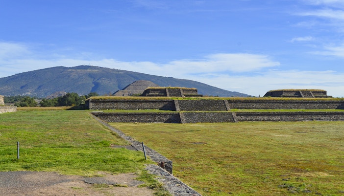 Por volta de 100 a.C., Teotihuacán passou de um pequeno povoado a um grande centro urbano. Seus habitantes originais, cuja identidade ainda é desconhecida, criaram uma cidade meticulosamente planejada com um eixo central e ruas em forma de grade. Esse período inicial foi definido pelo início da construção em larga escala, refletindo uma sociedade altamente organizada com a capacidade de mobilizar uma vasta força de trabalho.